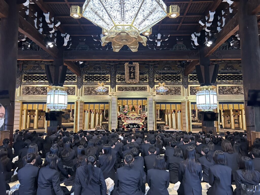 1日目は、京都にある西本願寺にて、参拝作法や仏教の教えについて学びました。