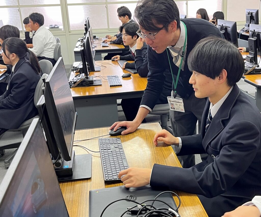 福山大学工学部情報工学科の天満先生を講師としてお迎えし、情報科の特別授業動を行いました。