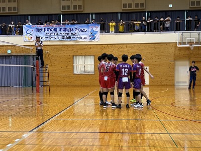 男子バレーボール部は現在1年生8人、2年生13人、3年生1人の計22人で活動しており、岡山県ベスト4を目指して毎日練習を頑張っています。