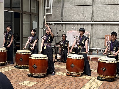 ドライエリアで行ったため、廊下や教室の窓から聴いている多くの生徒の姿が見られました。圧巻される迫力ある演奏でした。